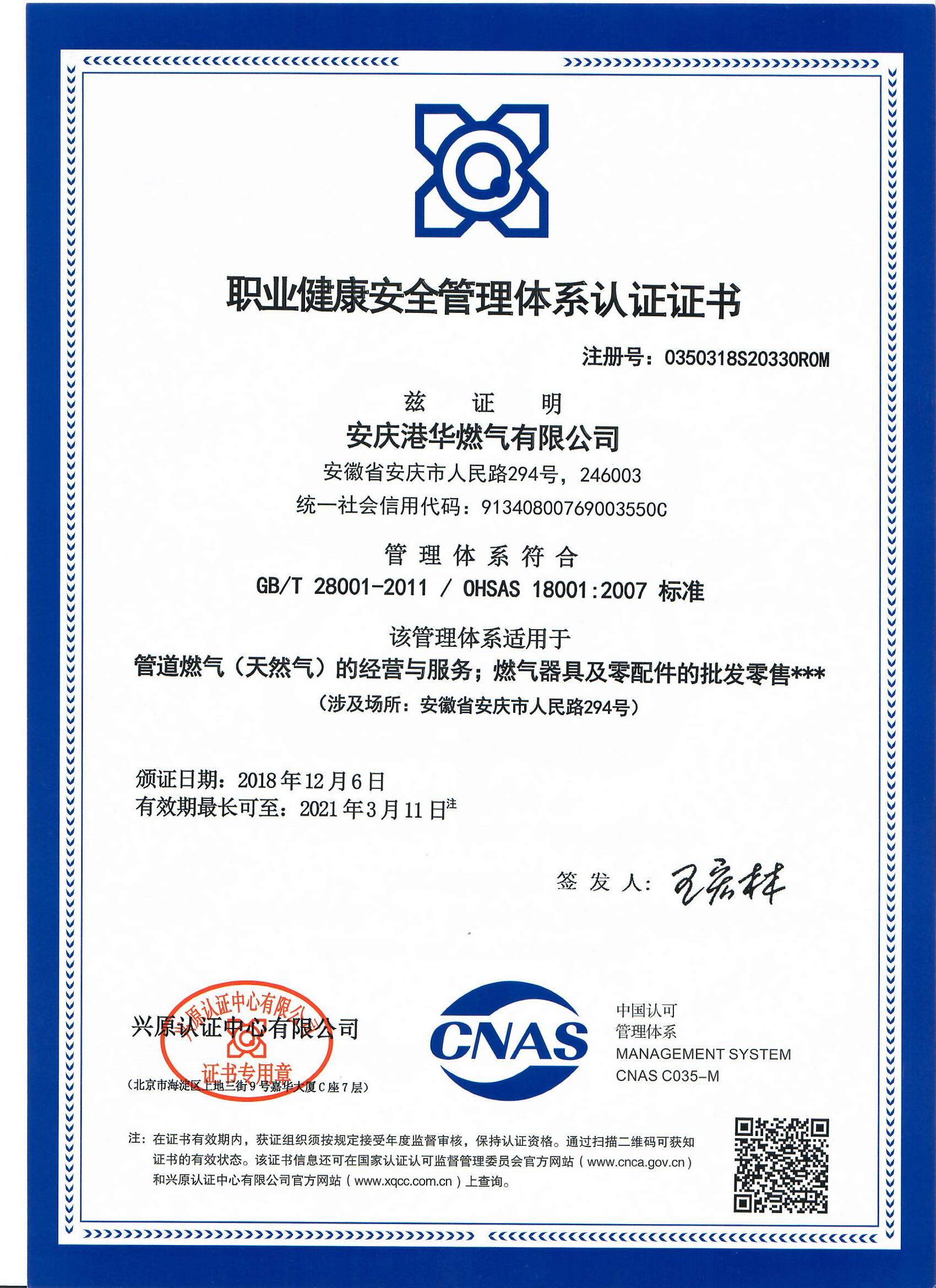 日前,安慶港華順利通過(guò)了“質(zhì)量、職業(yè)健康安全管理(ISO9001、OHSAS18001)”雙體系認(rèn)證審核。
