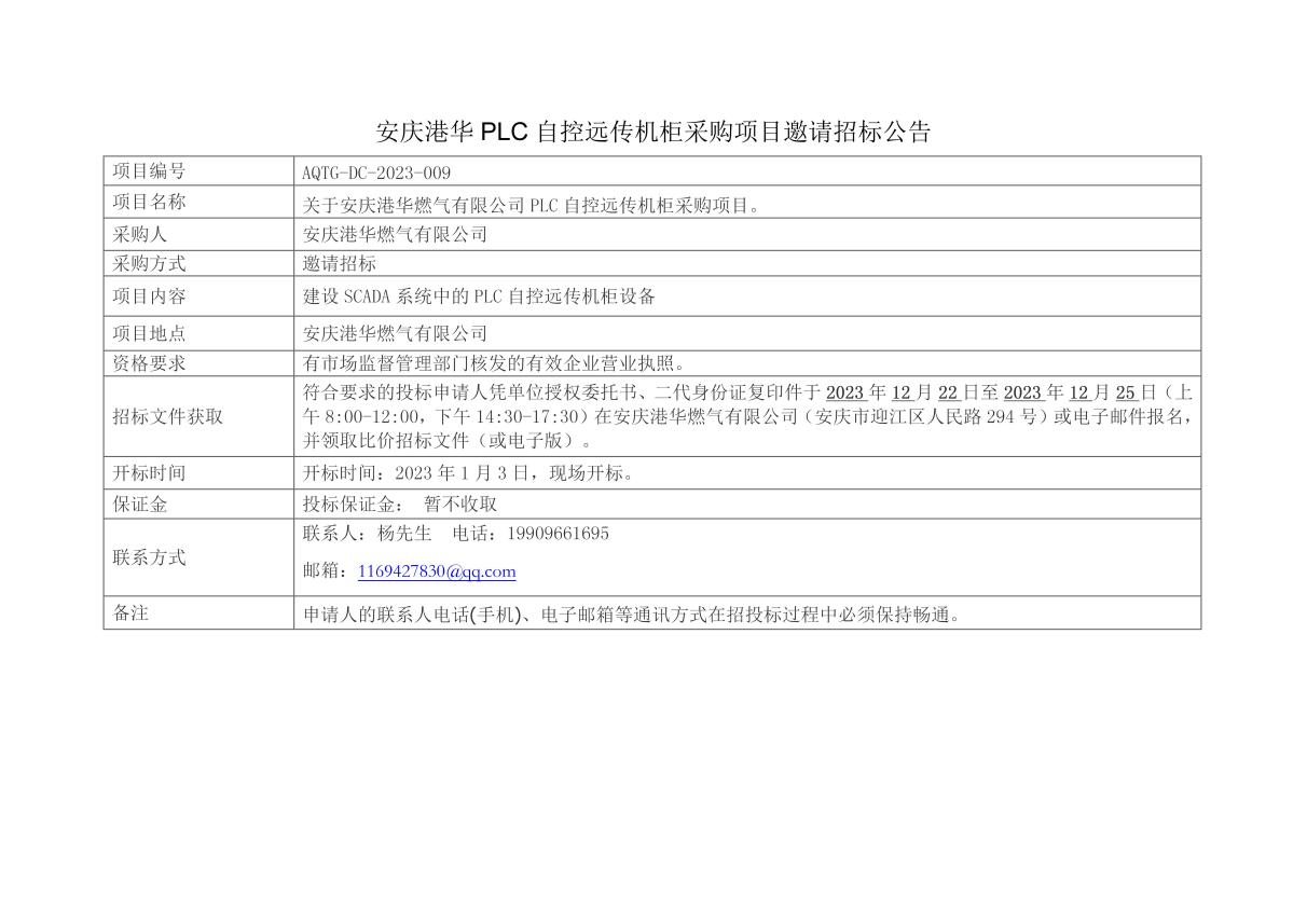 安慶港華PLC自控遠(yuǎn)傳機(jī)柜采購項(xiàng)目邀請(qǐng)招標(biāo)公告