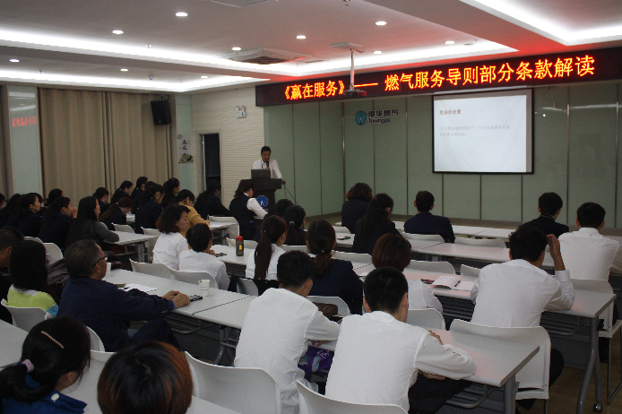 培訓(xùn)以重溫國家質(zhì)監(jiān)總局和標(biāo)準(zhǔn)化管理委員會共同發(fā)布的《燃?xì)夥?wù)導(dǎo)則》為切入點(diǎn),從企業(yè)的發(fā)展和應(yīng)承擔(dān)的責(zé)任出發(fā),結(jié)合日常工作,重點(diǎn)解讀燃?xì)夥?wù)的規(guī)范化;并利用案例分析,使大家對平時習(xí)以為常的服務(wù)觀念、服務(wù)行為有了更深入的認(rèn)識,從中總結(jié)工作中成功經(jīng)驗(yàn)和好的做法,也認(rèn)識到還存在有待改善的地方。